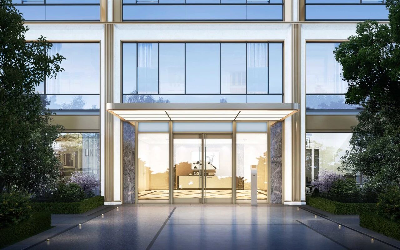 建筑立面采用现代简约设计理念,摒弃传统住宅的冗余装饰,以极简的设计语言,实现居住空间与城市美学的融合。设计中,以香槟金色金属线条为脉络,串联起大面积玻璃幕墙,形成光影流转间的质感。整体风格利落通透,突出材质本身的肌理与光影韵律,于朝暮流转、视角更迭间呈现出丰富细腻的视觉层次。