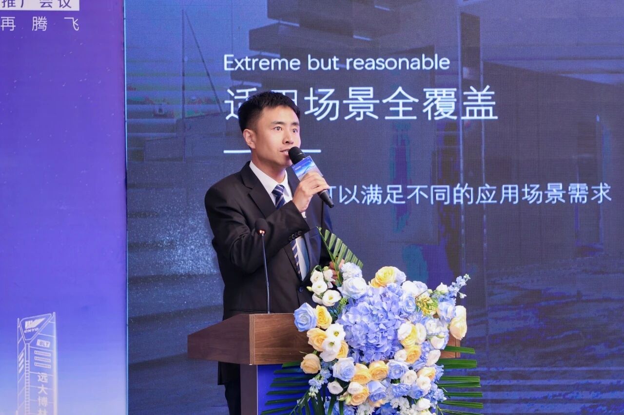 远大智能博林特电梯北部区域总经理梁若冰系统介绍了远大集团与远大智能工业集团博林特电梯的发展历程和综合实力。