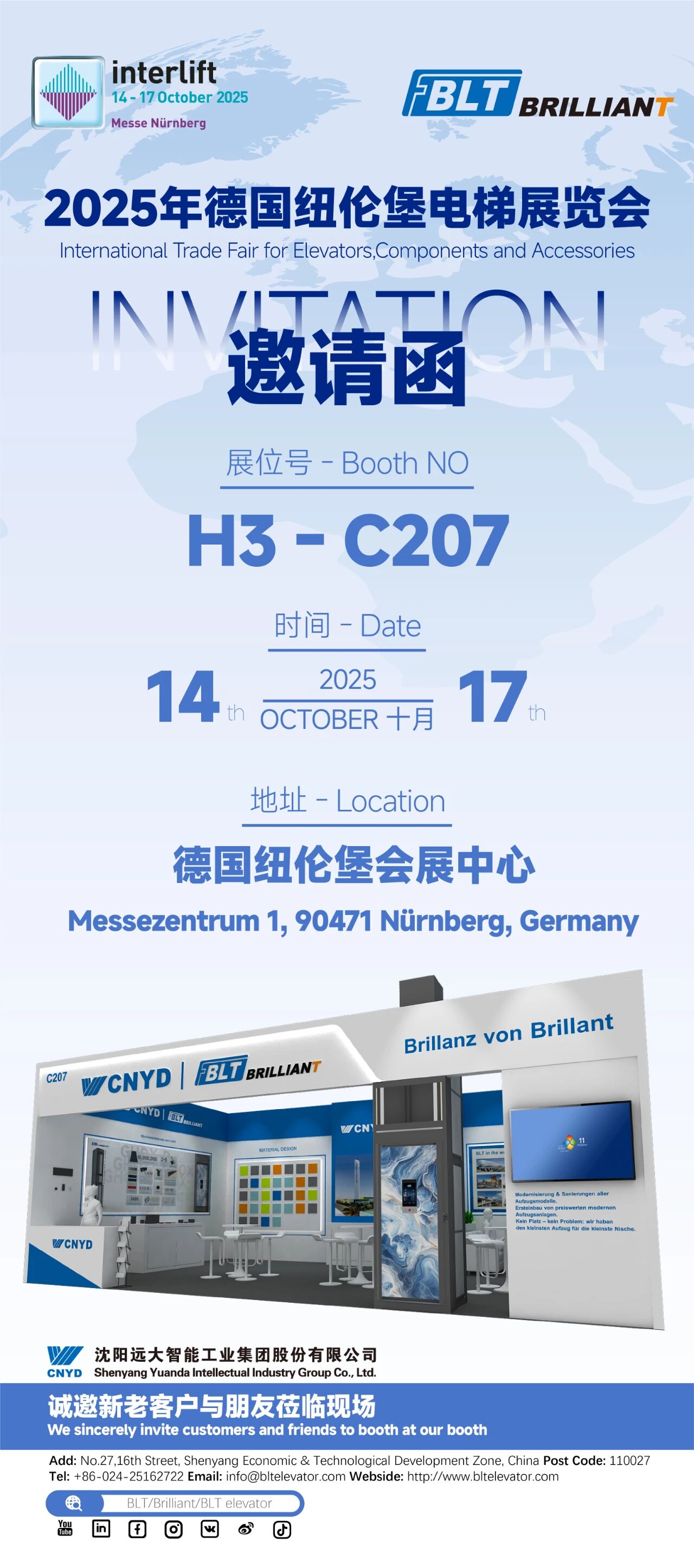 2025年10月14-17日,远大智能工业集团博林特电梯将以“创新驱动・智联全球”,亮相德国纽伦堡会展中心H3-C207展位,参与全球顶级电梯行业盛会——德国纽伦堡电梯展览会(INTERLIFT)。