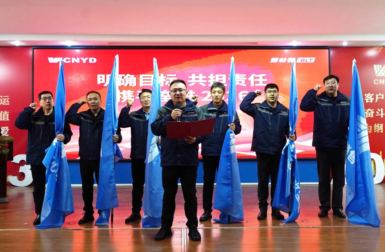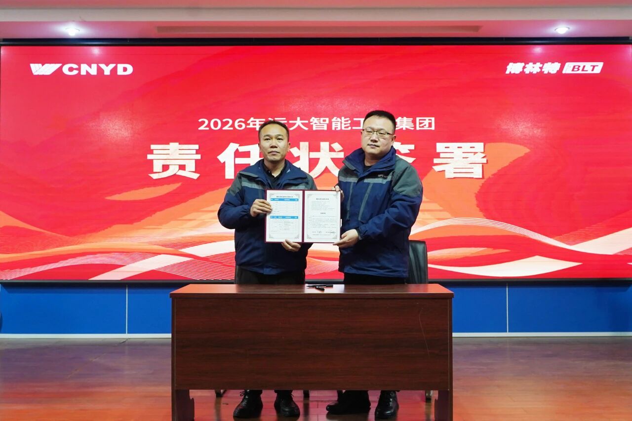 在庄重的责任状签署环节,王延邦总裁依次向国内销售系统、国际销售系统、生产系统、产品技术系统、服务运营系统负责人颁授了2026年度战略经营责任状。各业务板块负责人郑重签署,责任状内容全面承接集团战略,指标科学量化。