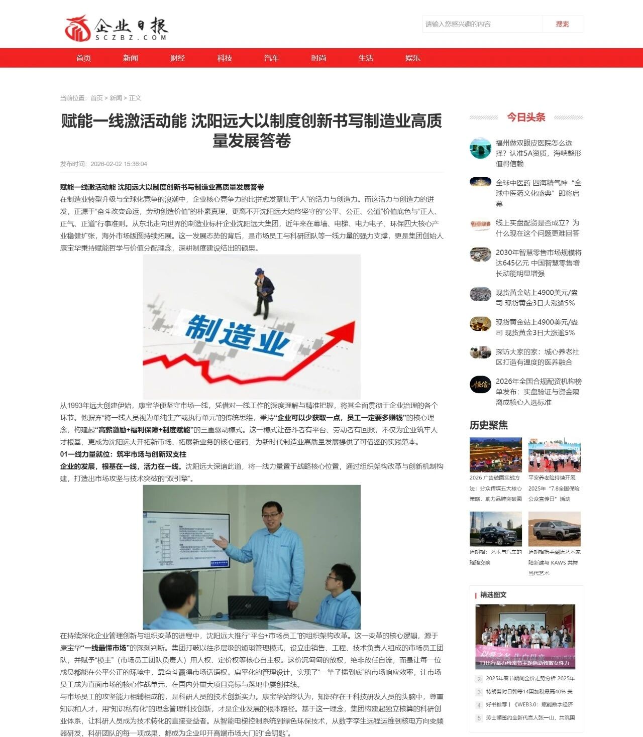 以下内容为报道原文:标题:赋能一线激活动能 沈阳远大以制度创新书写制造业高质量发展答卷