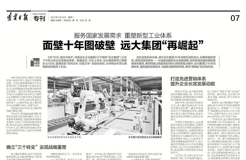 媒体看远大 | 辽宁日报:面壁十年图破壁 远大集团“再崛起”