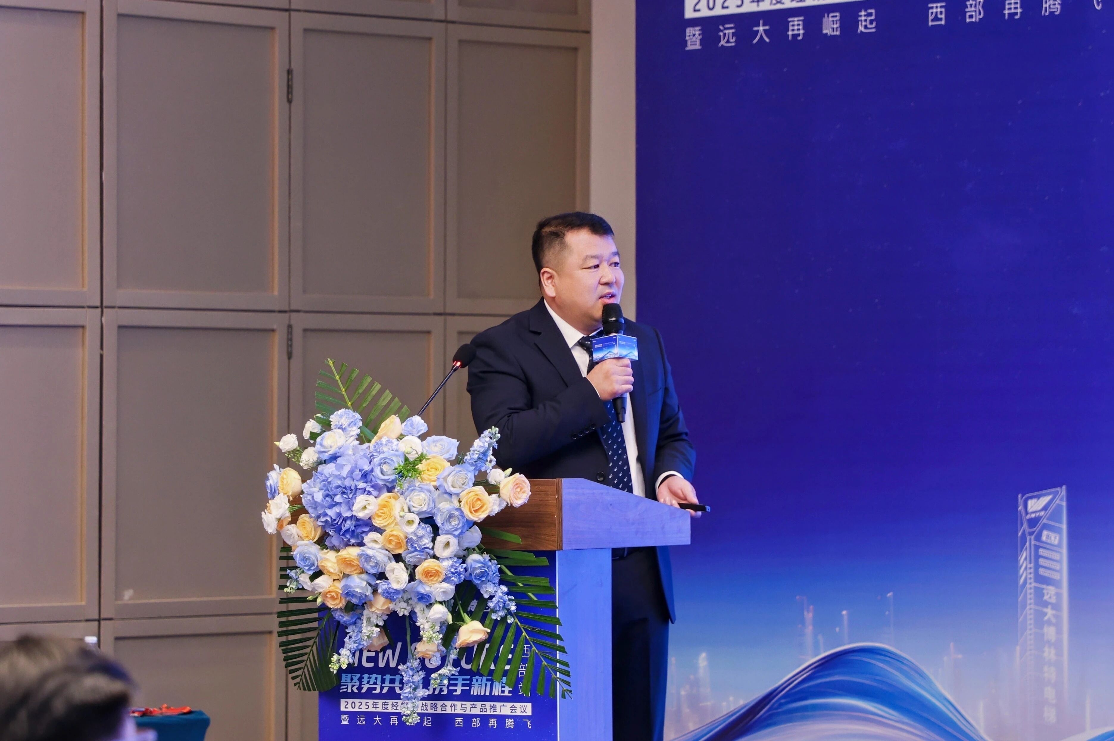 会议在雄浑奔放的黄河之滨拉开帷幕。远大智能工业集团博林特电梯国内市场总裁邹宽先生代表集团致欢迎辞。他从西部地区的战略地位切入,强调这里是国家“一带一路”建设、西部大开发等多重战略叠加的热土与枢纽。他指出,2025年上半年博林特电梯新签销售订单额实现突破,国内外参展、推介会达几十场,先后中标沈阳地铁、山东高铁等一批重大项目,展现出强大的品牌实力与发展韧性。