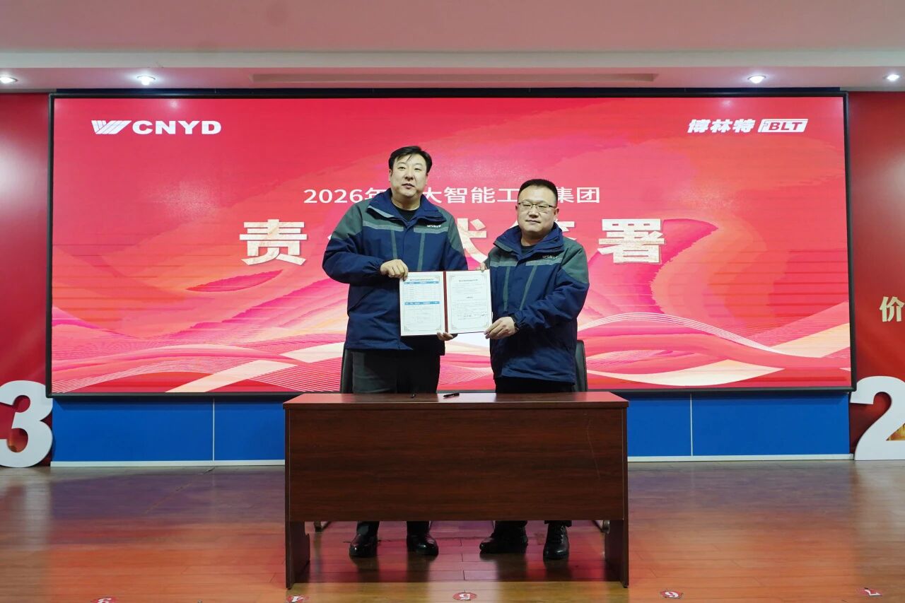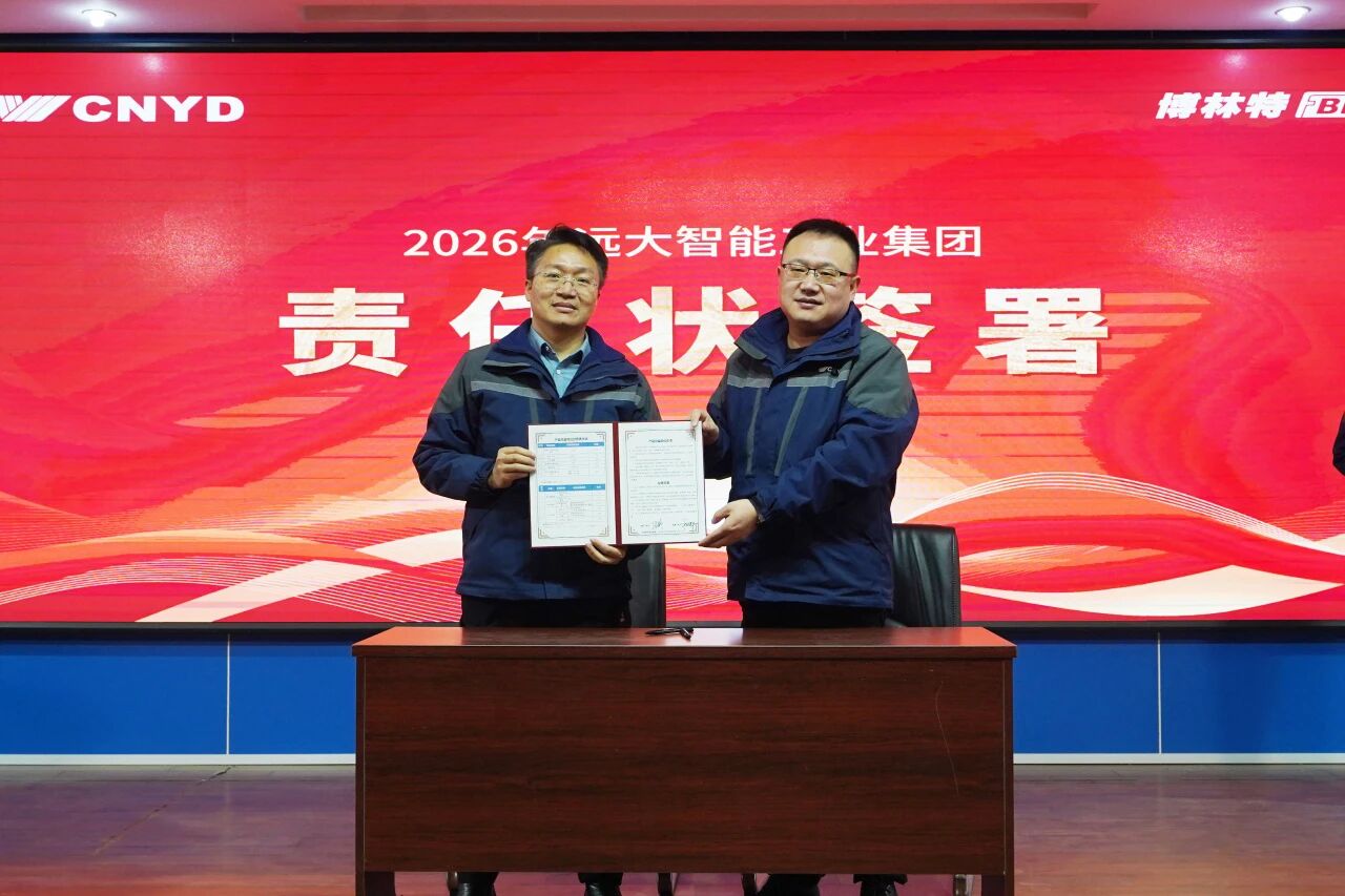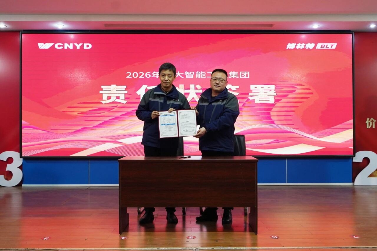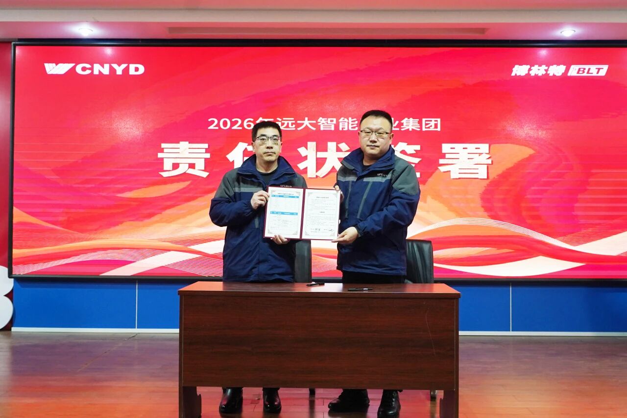 在庄重的责任状签署环节,王延邦总裁依次向国内销售系统、国际销售系统、生产系统、产品技术系统、服务运营系统负责人颁授了2026年度战略经营责任状。各业务板块负责人郑重签署,责任状内容全面承接集团战略,指标科学量化。