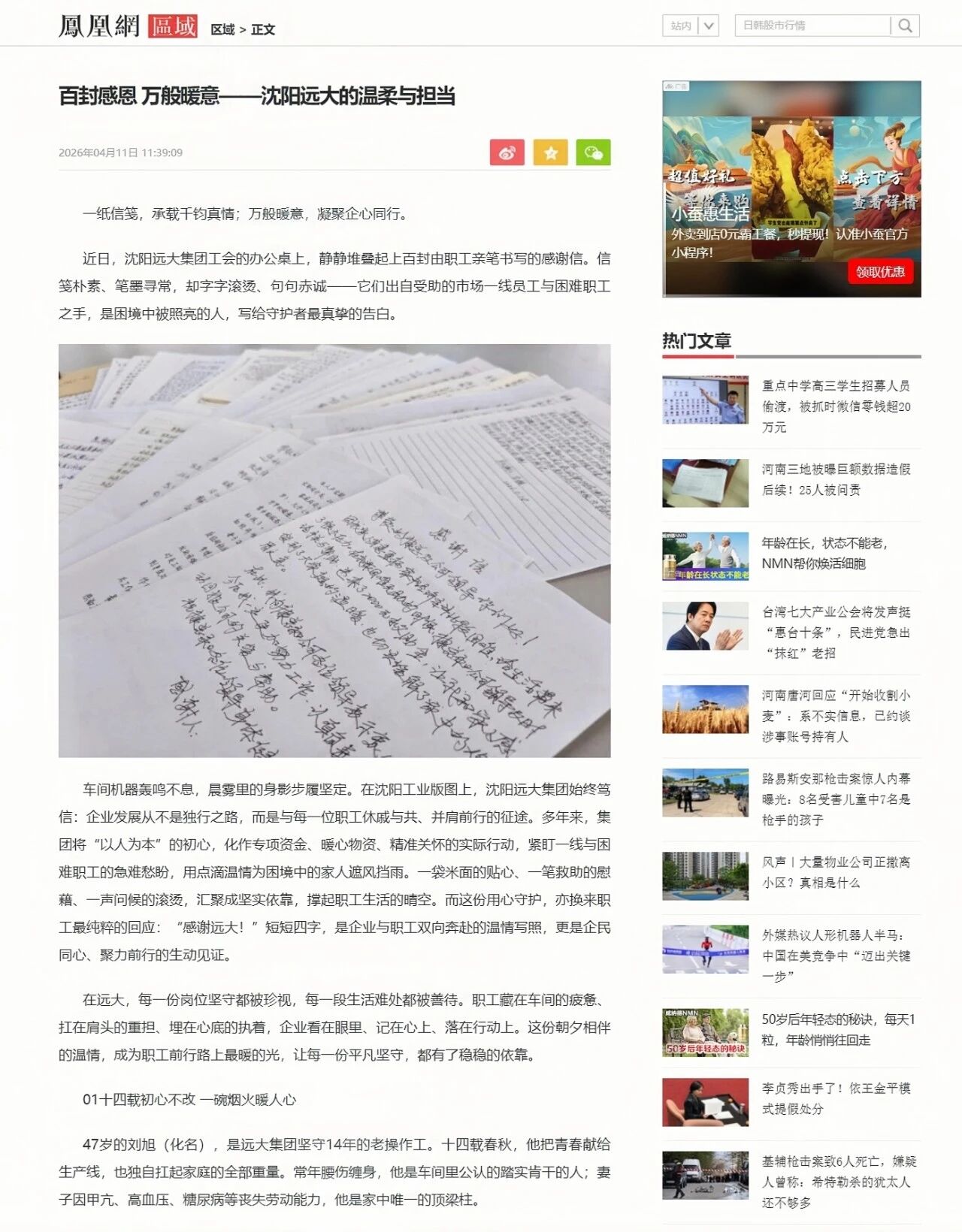 标题:百封感恩 万般暖意——沈阳远大的温柔与担当
